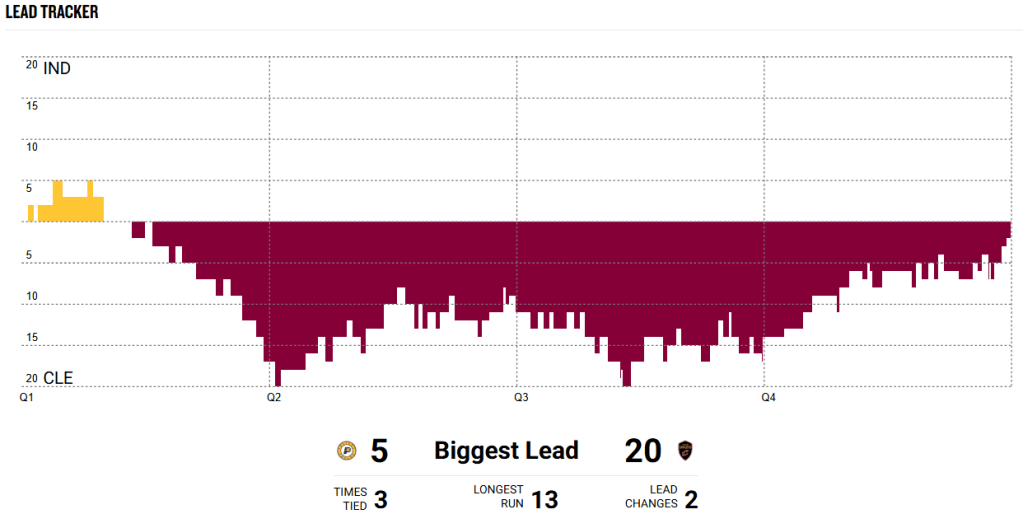 If the NBA Lead Tracker from the Knicks-Celtics game on Monday looked crazy, the one from the Pacers-Cavs game from Tuesday night is scarcely believable.
